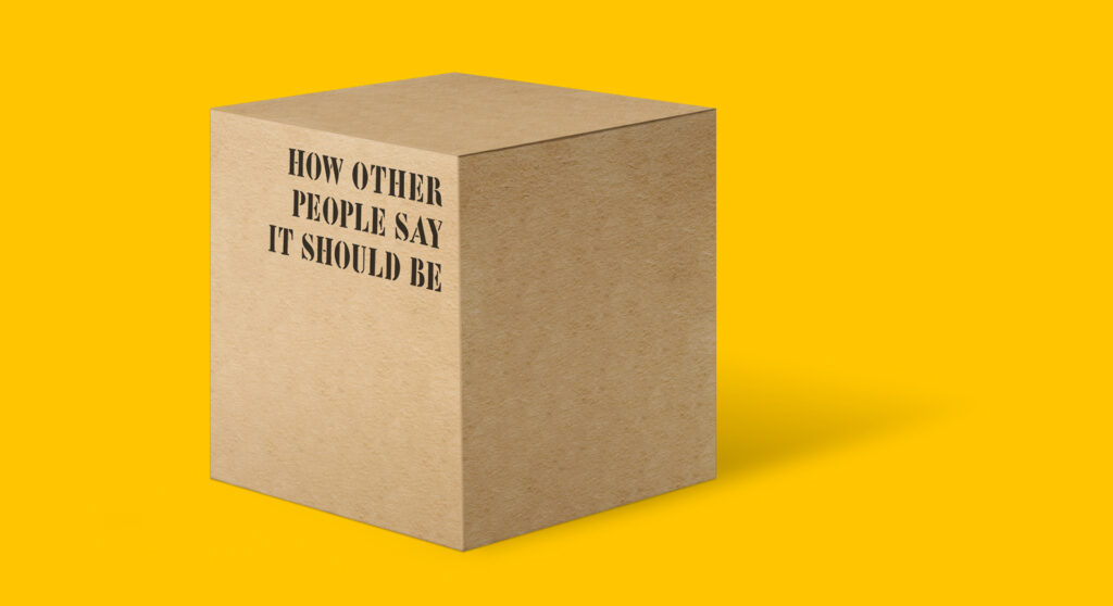 The ‘box’ is the set of restrictions posed upon our thinking by how things have always been done or what people have come to expect. This can be due to tradition, regulation, trend, status quo, industry standards, accepted social norms, best practices, and logic. Ultimately the ‘box’ is what other people say or have said is acceptable or how it should be.